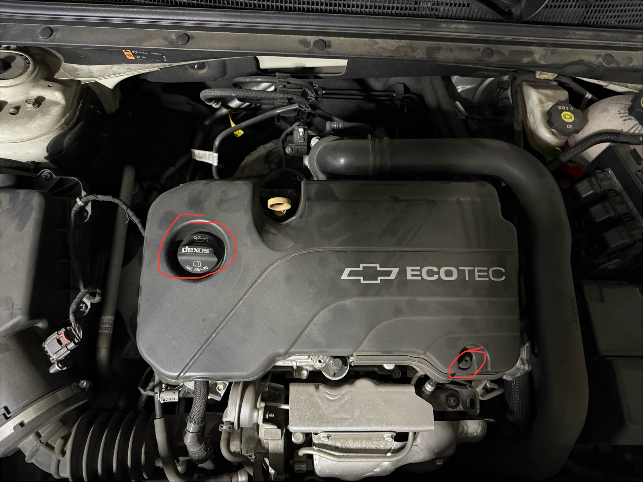우선 본넷을 열고 엔진커버를 분리해야 한다. 엔진오일캡도 빼야 되어서 엔진커버 분리 후 이물질이 안 들어가게 다시 엔진오일캡을 끼워준다. 그리고 우측 하단에 T30 별나사를 풀어주면 플라스틱으로 된 엔진커버는 분리가 쉽게 된다.